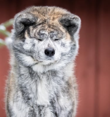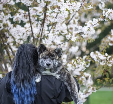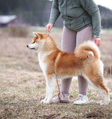 I breed Akitas on a small scale in a home environment. Our dogs are primarily beloved family members. Our litters grow up with us in the midst of everyday life, getting used to the hustle and bustle, other dogs and new people.